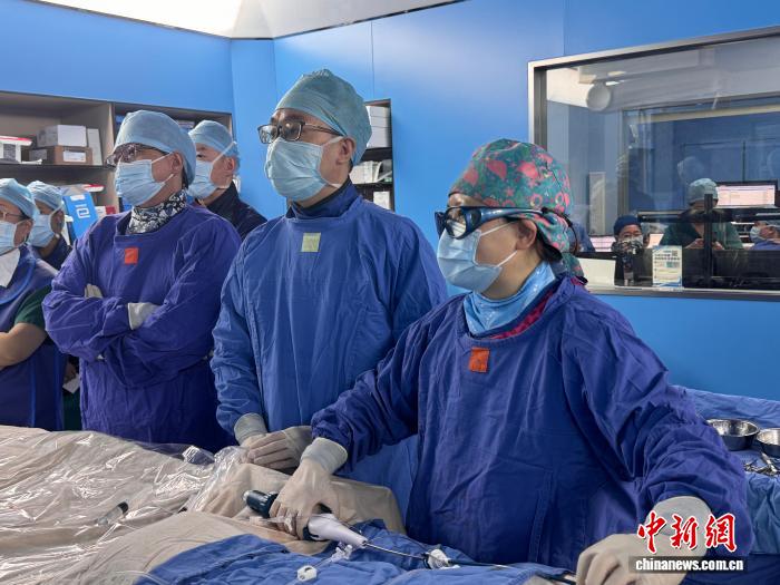 中国专家完成新一代AVEIR™DR双腔植入式无导线心脏起搏器在全国首批、华东地区首例的手术植入。(葛均波团队供图)