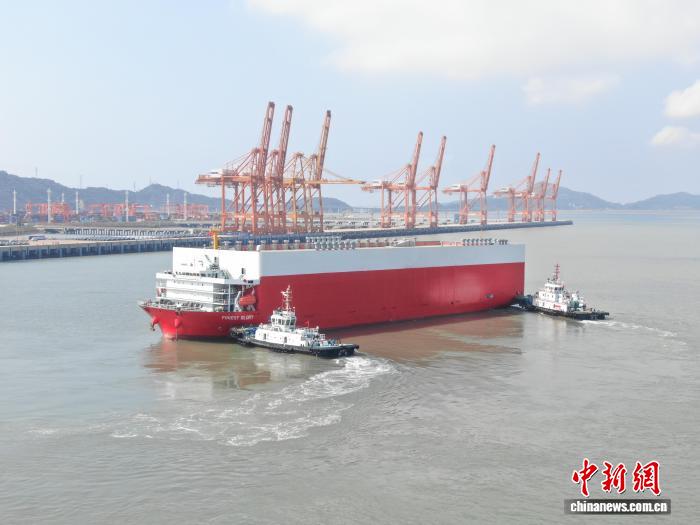 图为海事部门工作人员在现场进行保障工作。为保障航线顺利开通和滚装船首航成功,温州海事部门联合多家单位,制定“一船一策”保障方案,开辟24小时“优先查验”绿色通道,实施“远程预检+登轮检查”等,全方位保障船舶运输安全。浙江海事局供图