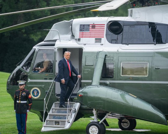 9月16日,在美国首都华盛顿,美国总统特朗普登机离开白宫,启程对英国进行国事访问。新华社记者胡友松摄