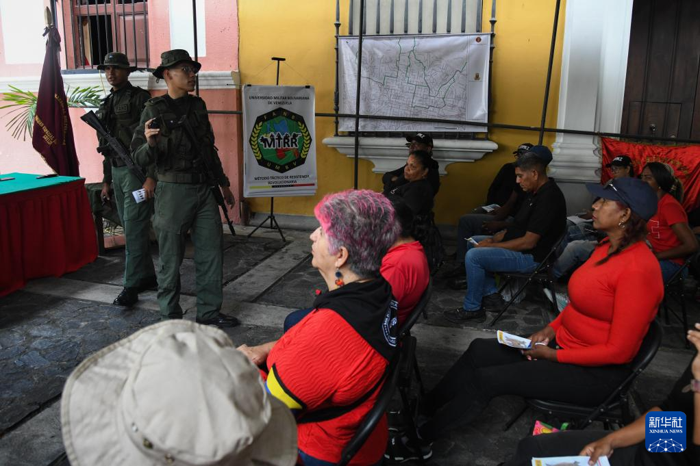 9月20日,在委内瑞拉首都加拉加斯,武装部队人员向民兵和社区居民讲授作战知识。新华社发(马科斯·萨尔加多摄)