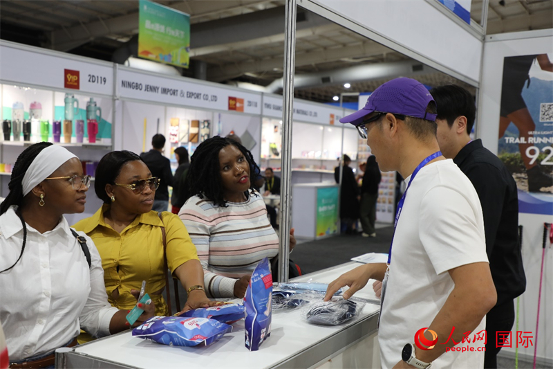 在第九届中南贸易博览会上,参观者与中国展商交流。人民网记者 戴楷然摄