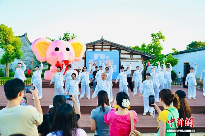 在“松弛场”,以天空为幕、绿茵为席的颂钵手碟音乐会奏响,空灵乐声中数十位游客闭眼冥想;专业老师带领的八段锦、户外瑜伽轮番上演,一招一式间消散浮躁与疲惫。