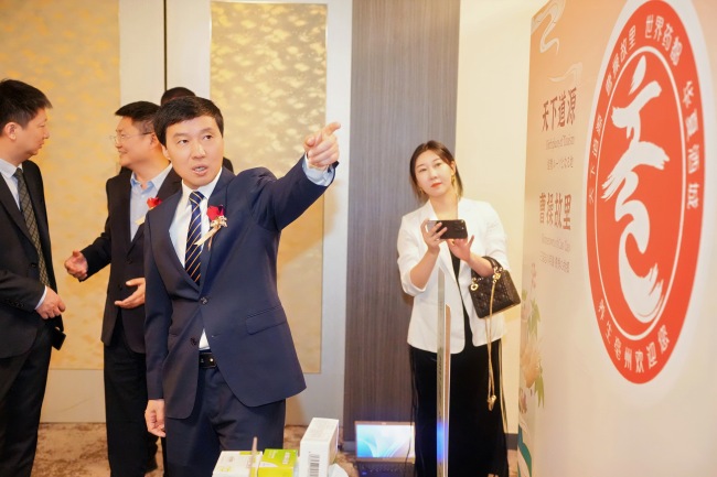 图丨亳州市委常委、副市长钟治峰向嘉宾介绍亳州特色产业