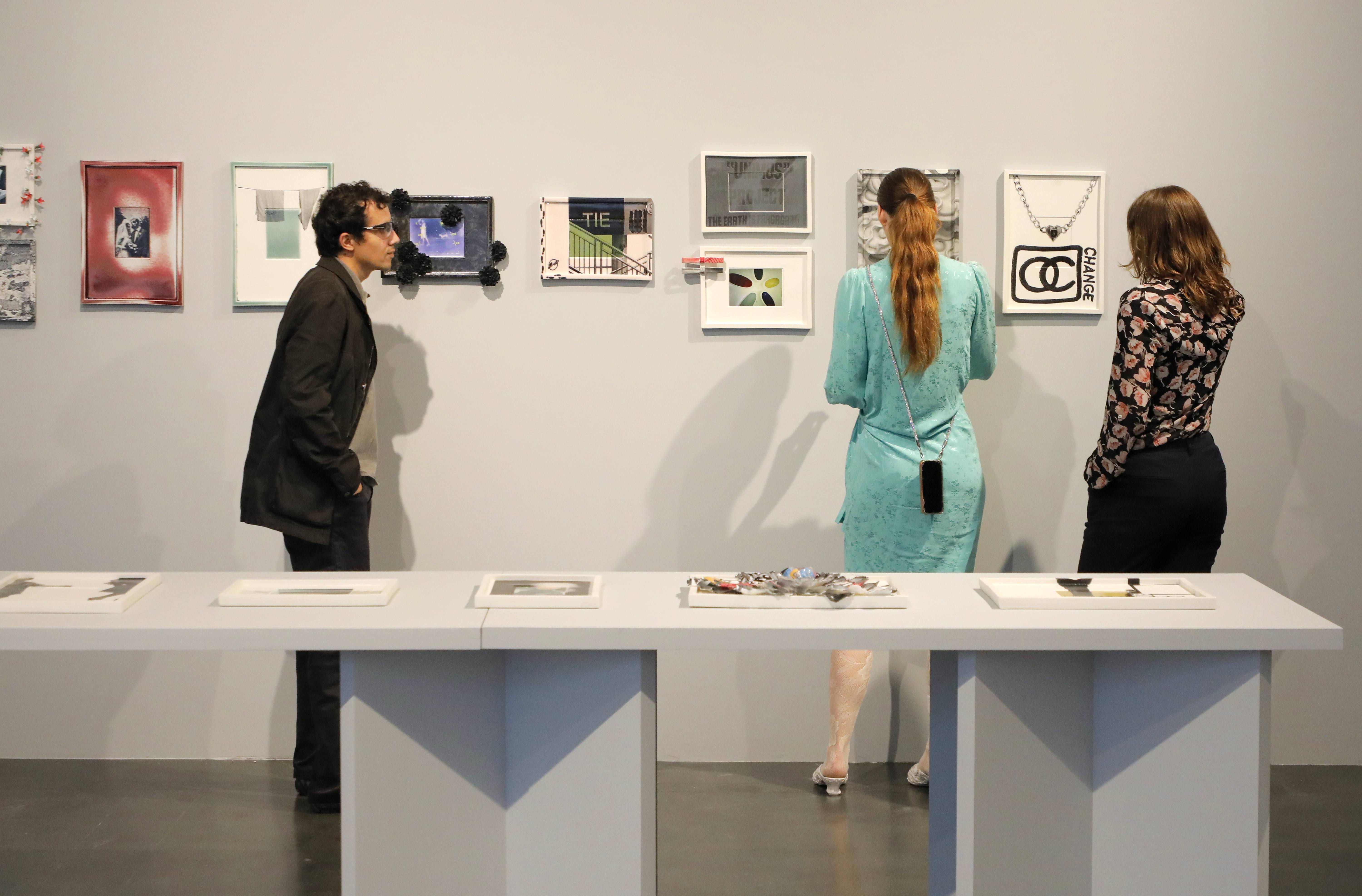 在北京中间美术馆,参观者在观赏“抛锚歌单”中瑞当代艺术展上的展品。瑞士驻华大使馆供图
