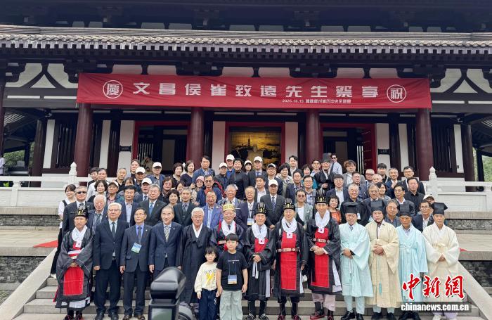 中新网扬州10月15日电 (朱晓颖 崔佳明)10月15日是扬州市“中韩友好交流日”。当日,扬州蜀冈唐子城之上举办崔致远先生祭享活动,韩国庆州崔氏中央宗亲会访问团的百余名崔氏宗亲和扬州崔致远纪念馆全体员工相聚在崔致远纪念馆,共同纪念被誉为“中韩交往第一人”的崔致远。