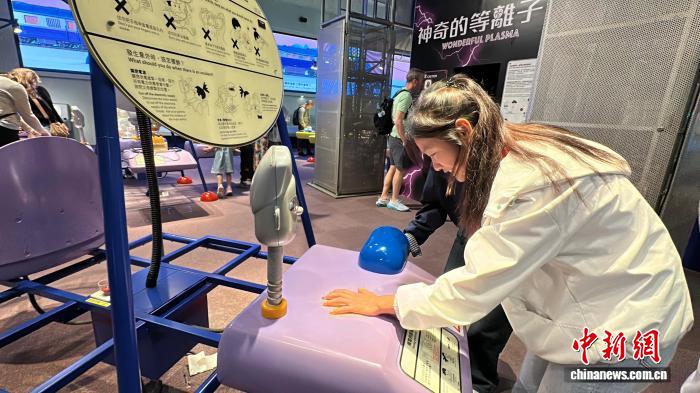 10月22日,图为甘肃学生在香港科技馆内体验互动装置。王牧雨 摄