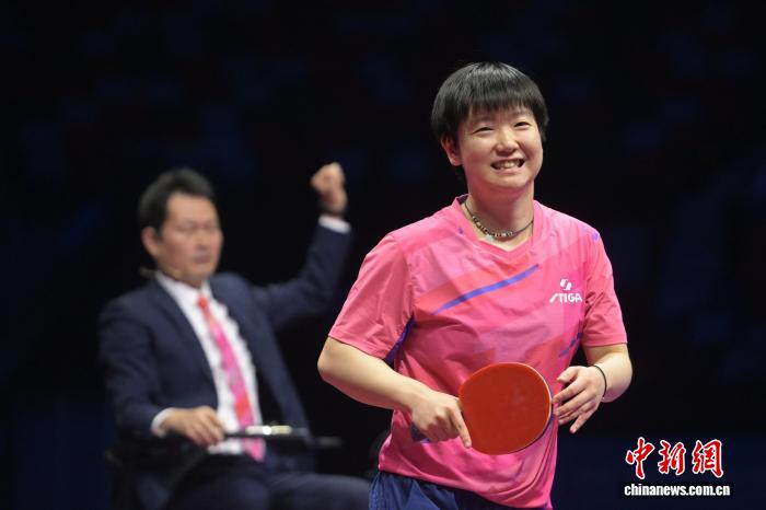 图为河北队选手孙颖莎(左一)在比赛中庆祝。中新网记者 陈永诺 摄