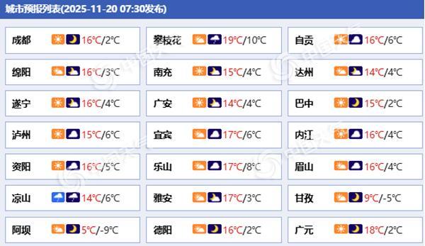 未来三天(11月20日至22日),四川盆地以多云到阴天为主,部分地区有小雨,攀西地区和川西高原雨雪连连,局地有大雪,公众雨雪天气出行请留意交通安全。