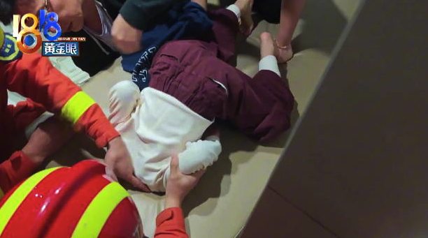 宁波高新区的一个5岁小男孩,在理疗床上玩耍时,将头钻进床上的透气洞里,退不出来了。消防员试图调整他的头部角度,还是出不来,于是决定破拆。