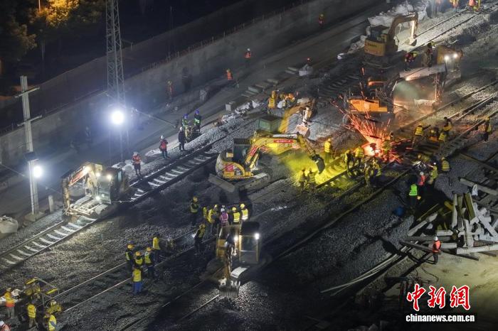 中新网成都1月16日电 (记者 刘忠俊)1月16日,成都铁路枢纽八里站信号倒接及线路拨接施工顺利完成。900余名作业人员历经330分钟连续奋战,为成渝中线高铁引入成都站工程奠定了坚实基础,也为后续项目推进创造了有利条件。