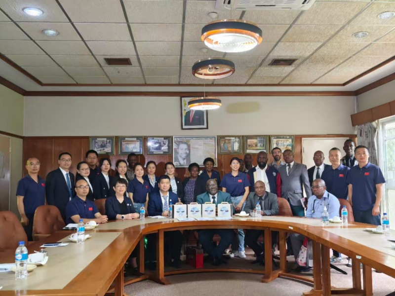 中外方医护人员交流合影。中国援津巴布韦医疗队供图