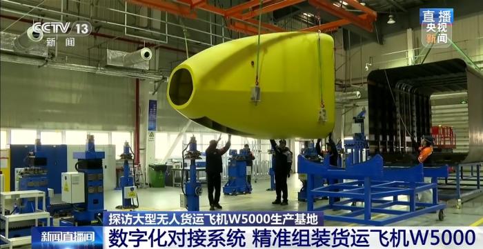 目前,我国在研载重最大的无人货运飞机W5000正在进行首飞前的最后调试。