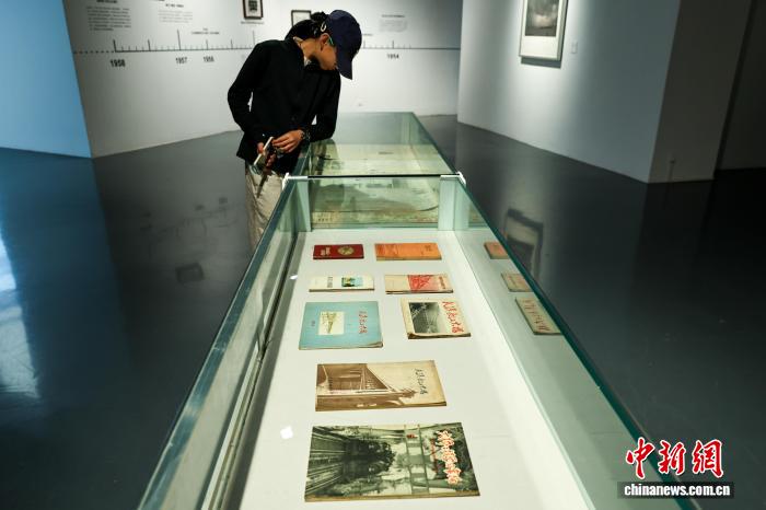4月1日,湖北武汉,观众参观展出的关于武汉长江大桥建设的书籍和报刊。 中新社记者 张畅 摄