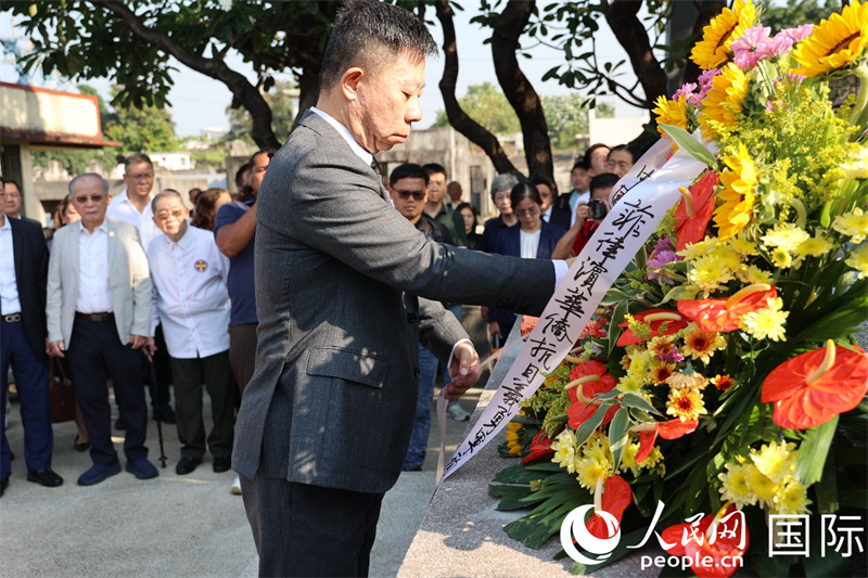 中国驻菲使馆外交官、菲律宾华侨抗日游击支队后裔、菲华主要社团代表等前往马尼拉华侨义山祭奠华侨抗日英烈。人民网记者 樊帆摄