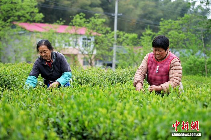 4月14日,六安市裕安区独山镇双峰村村民在采茶。中新社记者 张强 摄