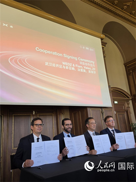 此次“武汉造 全球行”走进巴黎,是武汉汽车产业加快“出海”步伐的重要一站。活动现场,武汉经开区与法雷奥、采埃孚、菲亚姆等知名欧洲企业围绕汽车产业链签订合作协议;东风公司签订1000台海外批量订单;莲花跑车也与欧洲经销商签订合作协议。