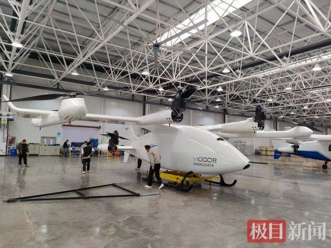 本次试飞的V1000B货运版载重能力为400公斤,整机翼展13.26米,最大起飞重量2.6吨。采用混合动力设计的V1000具备垂直起降、大载重比、远航程和低成本等特点,多项设计指标对标国际一流水平,并按照适航认证标准设计。该机型配备了8套旋翼动力系统,其中外侧4套为定距桨旋翼动力,内侧4套可通过伺服电机倾转,驱动旋翼运动至垂直向上或水平状态。起飞和着陆阶段,8套旋翼动力系统提供垂直向上的拉力;巡航平飞时,内侧4套螺旋桨倾转90度,实现飞行器的巡航飞行。V1000也是国内首款获得民航局TC(型号合格证)受理的大型混动eVTOL(电动垂直起降飞行器)。