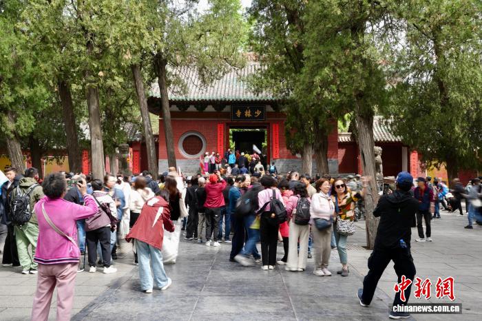 图为中外游客在少林寺参观。中新社记者 李超庆 摄