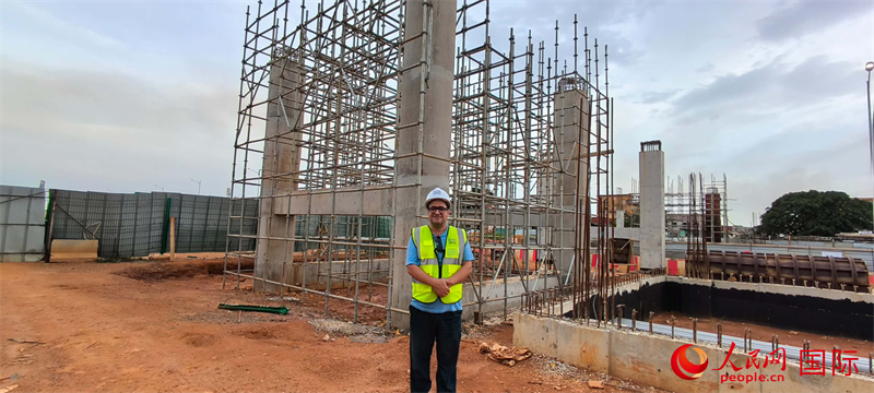 当地工人在施工现场。人民网记者 黄培昭摄