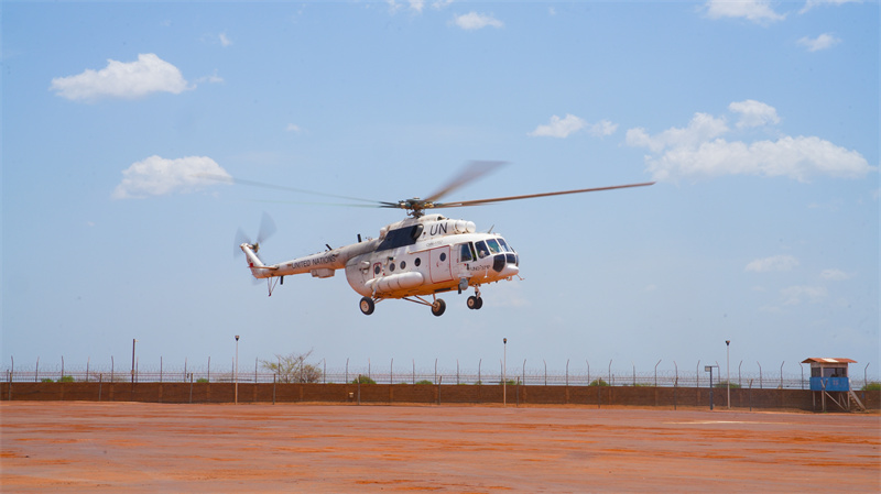 中国第六批赴阿卜耶伊维和直升机分队紧急升空补位支援。黄浩摄