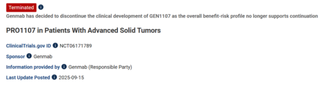 丹麦制药巨头Genmab斥资18亿美元押注的“核心资产”骤然搁浅,ADC赛道的GEN1107黯然退场。