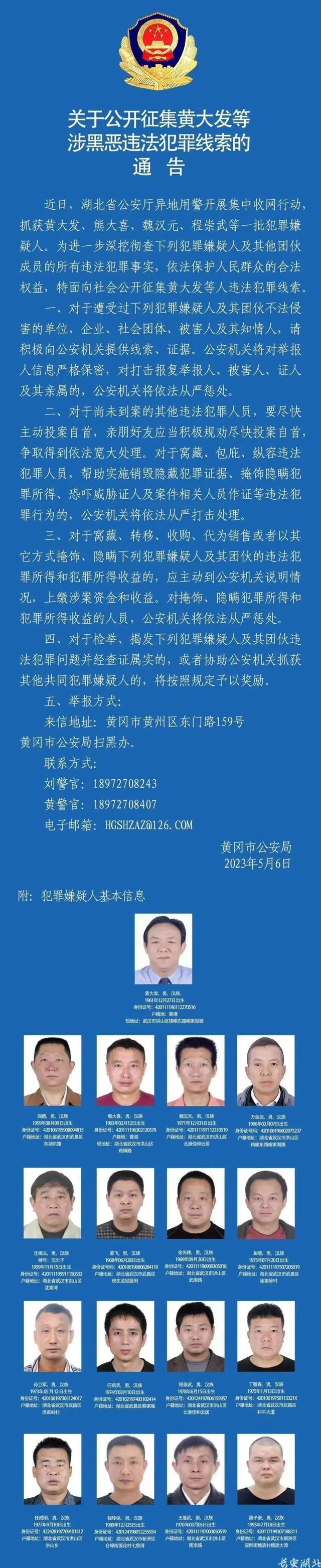 2026年4月20日,湖北省黄冈市中级人民法院对黄大发等12人组织、领导、参加黑社会性质组织案进行一审公开宣判