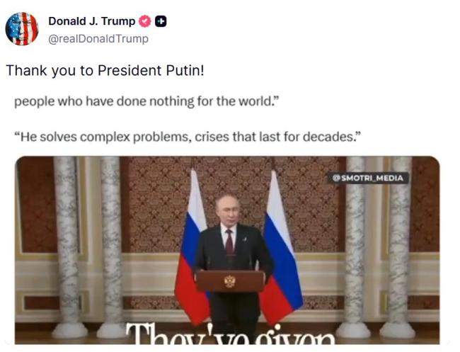 普京回应特朗普未获诺贝尔和平奖 肯定其和平努力