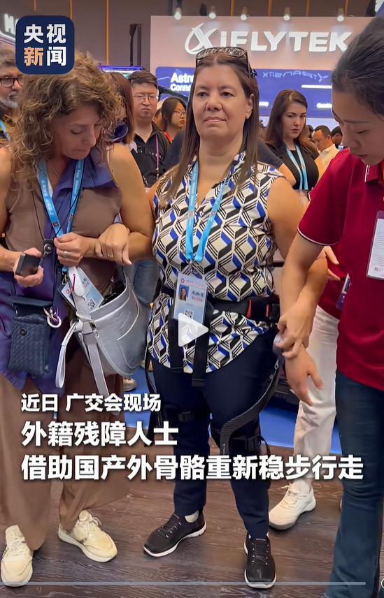 近日,在第139届广交会上,一位来自阿根廷的肌无力患者在杭州企业研发的外骨骼机器人帮助下缓缓站了起来,迈出了久违的步伐。这一幕让她的亲友激动落泪,现场观众也自发鼓掌欢呼
