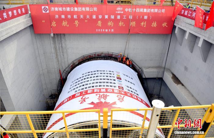 中新网济南3月20日电 (记者 沙见龙)3月20日上午,随着开挖直径15.06米的“启航号”盾构机精准顶推到位,由济南城市建设集团投资建设、铁四院设计、中铁十四局承建的济南市航天大道穿黄隧道南线盾构顺利贯通,标志着连