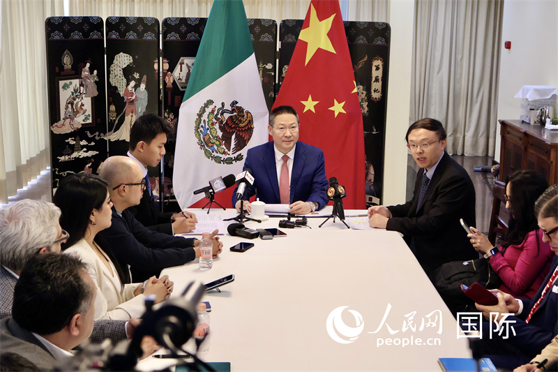 人民网墨西哥城3月20日电(记者谢佳宁)3月19日,驻墨西哥大使陈道江召开记者会,宣介全国两会精神。墨《每日报》《千年报》《先驱报》《经济学家报》《进程》杂志、阿兹特克电视台、电视6台等媒体代表出席。