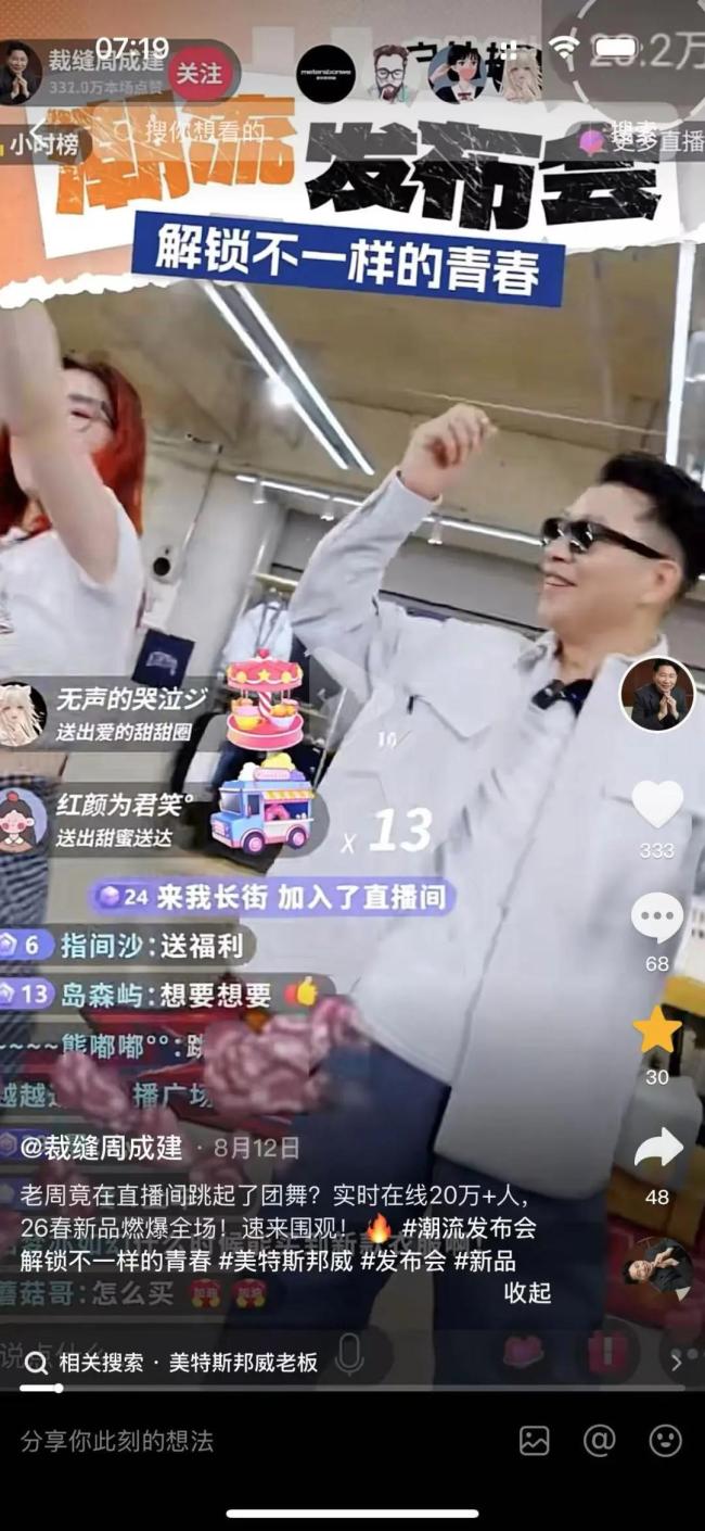 近期,美特斯邦威创始人周成建在直播间跳团舞引发关注,多家媒体连番报道数日。
