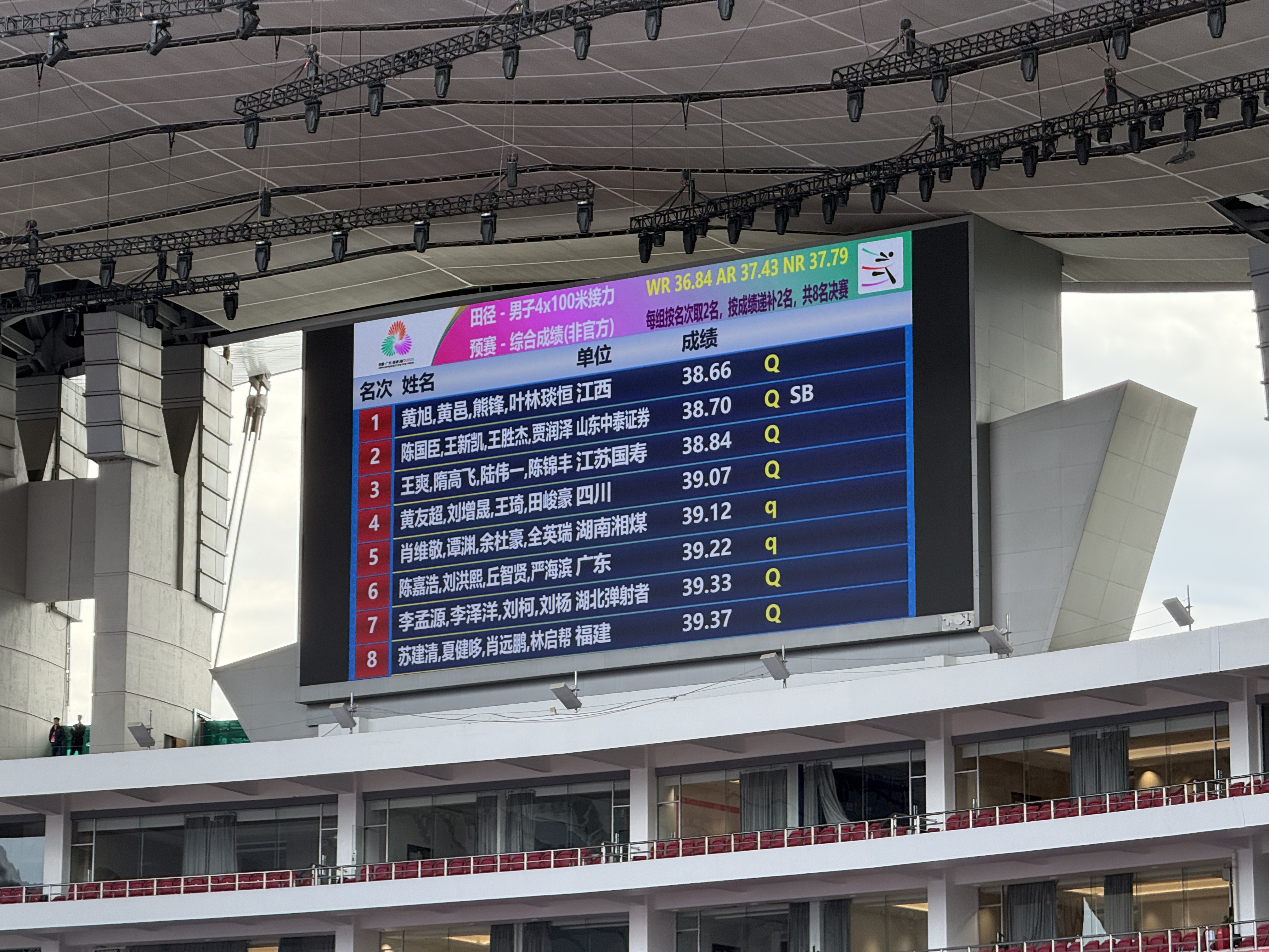 中新网11月20日电 (记者 蔡敏婕)11月20日,十五运会田径赛场进入最后一天的比拼,备受关注的男子4×100米接力在当天早上进行预赛。江西队以38秒66排名首位。“亚洲飞人”苏炳添并未出战预赛。
