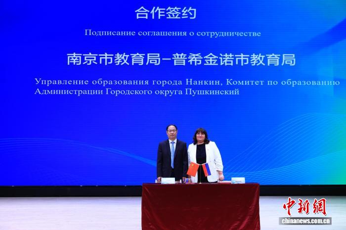 中新网南京4月8日电 (记者 徐珊珊)4月7日下午,“友好同心,以美育人——中俄教育年·南京市与普希金诺市教育文化交流活动”在南京外国语学校南部新城校区举行。