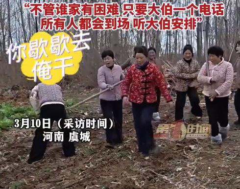 近日,河南虞城。陈女士的父亲离世后,母亲只能一个人干农活。当天,陈女士的母亲一个在地里种豌豆,80岁的大伯知道后,立即用电话喊来七八个堂姐。一亩地的豌豆本来一个人要干两天的时间,结果大家齐上阵,一下午就忙完了。陈女士:自从父亲和二伯去世后,...