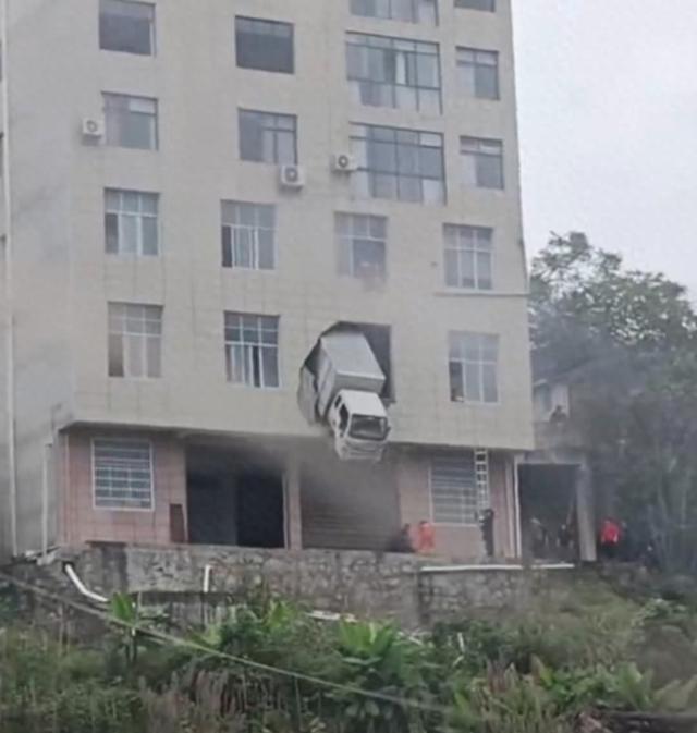 11月1日,有网民发布视频显示,一辆小型货车撞破墙体,悬挂在一栋7层建筑的2楼,车头外露,看起来十分惊险。有人质疑该视频为AI合成,但经核实,确有此事发生,地点位于湖北恩施鹤峰县容美镇新庄村