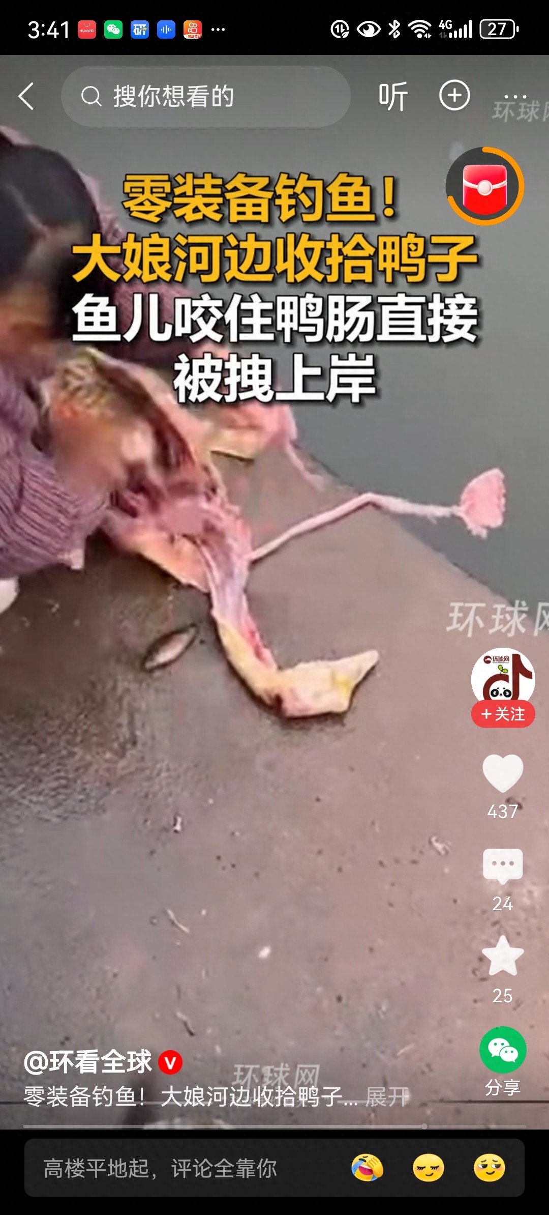 “没鱼竿、没鱼钩、没鱼饵,收拾个鸭子都能钓上鱼来”——2026年3月23日,一段视频在网络上迅速走红,画面里一位大娘蹲在河边的石阶上处理鸭子,正把鸭肠垂入水中漂洗时,一条鱼突然被血腥味吸引死死咬住鸭肠不放,大娘下意识往上一拽,竟直接把这条鱼...