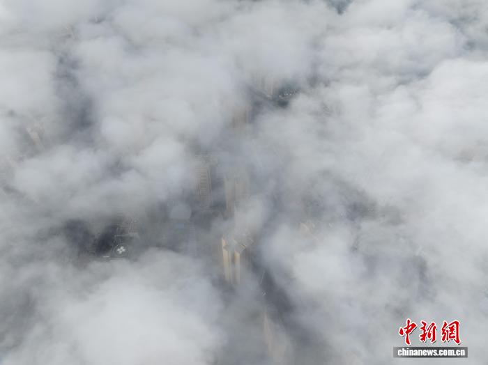 图为航拍务川平流云景观。(无人机照片)唐哲 摄 图为航拍务川平流云景观。(无人机照片)唐哲 摄