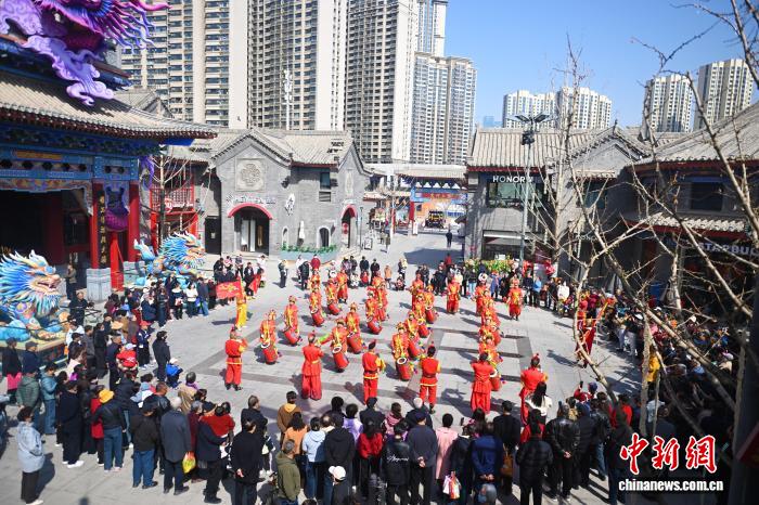 3月20日,在位于甘肃省兰州市的兰州老街,祥龙献瑞民俗活动进行中。当日是中国农历马年二月初二,兰州老街举行了祥龙献瑞、彩龙翻飞、龙跃老街等二月二传统民俗活动,以祈愿鸿运抬头、风调雨顺。中新社记者 李亚龙