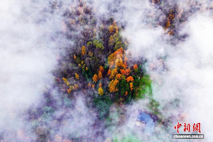 图为雾中绝美秋景。张远明 摄 图为秋叶点缀连绵山峦。张远明 摄 图为恩施市层林尽染秋意浓。张远明 摄