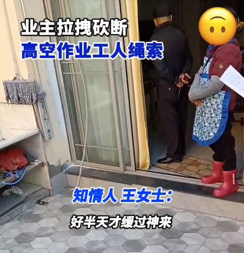 师傅16楼高空作业被3楼业主砍断绳索 师傅吓了好半天才反应过来
