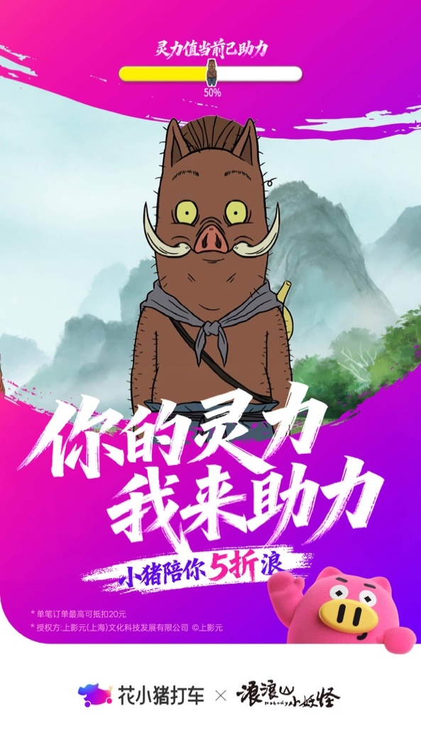 花小猪联动浪浪山小妖怪:乘客打车5折起,司机享最高94小时免佣